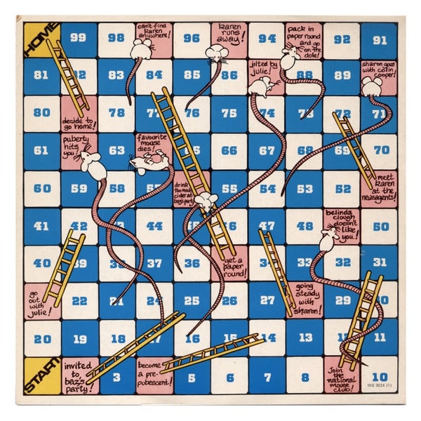 Im Frühling 1979 läuft mir ausgerechnet in München diese Platte über den Weg. Schönes Cover und irgendetwas hatte ich auch darüber im Melody Maker oder New Musical Express gelesen. Ein Spielbrett aus dünner Pappe mit aufgemalten Leitern und Mäusen gab es inliegend als Zugabe. Und völlig gutgelaunt geht es schon mit dem Opener ‚Baz’s Party‘ los: Die Jungs haben bunte Hemden, die Hosen sind frisch gebügelt, die Mädchen tragen alle Mini-Röcke und fühlen sich sexy. Zu ‚Telegram Sam‘ von T-Rex tanzen alle den ‚Idiots Dance der Skinheads‘ und John, unser Held, kommt bei Belinda Clough doch nicht so recht zum Zug. Die will sich lieber um ihre Freundin Maria kümmern. Die sitzt allein rum und außerdem nervt Belinda das Rumgefummel von John an ihrem BH. Also Abgang Belinda. Bald ist die Party zu Ende, alle sind gegangen. John hängt noch völlig fertig auf dem Sofa und vom Klo her hört er Baz, den Gastgeber, sich übergeben. Eine gelungene Party, wie die beiden finden. Viel zu viel Cider und in 4 Minuten 27 Sekunden auf Vinyl gepresst.